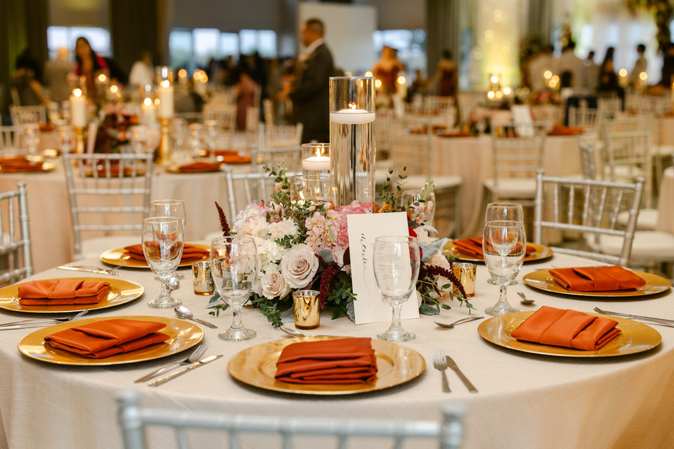 Emily and Hector’s reception at Rancho Guadalupe was a breathtaking display of romance and elegance. The venue was transformed into an enchanting space, illuminated by the soft glow of floating candlelight. The tablescapes featured tall glass cylinders with flickering candles, casting a warm, intimate ambiance over the evening’s celebration. Deep red, burgundy, ivory, and soft mauve florals—composed of lush roses, delicate hydrangeas, cascading amaranthus, and fresh greenery—wove through the design, creating a striking yet timeless aesthetic. The combination of rich floral hues and dreamy candlelight set the perfect tone for a night filled with love, laughter, and unforgettable memories.